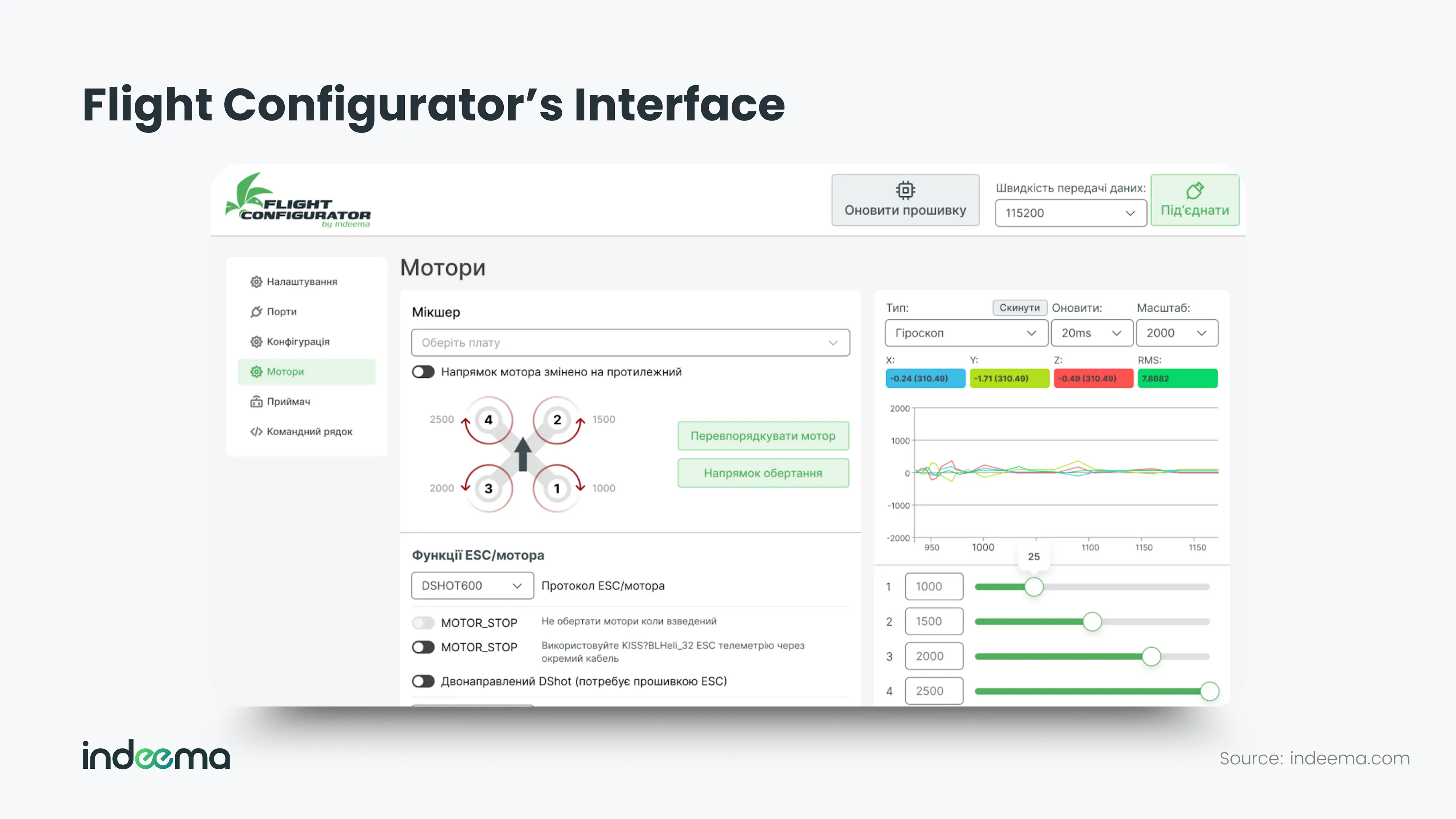 Ultimately, Indeema’s flight configurator bridges the gap between high-end configurators built for enthusiasts and the needs of businesses integrating drones into their operations. It helps understand how to use a drone for beginners and simplifies the essential setup process, making drone configuration accessible even to non-specialists. In essence, it embodies Indeema’s philosophy — engineering complex systems that remain practical, adaptable, and intuitive for every user.