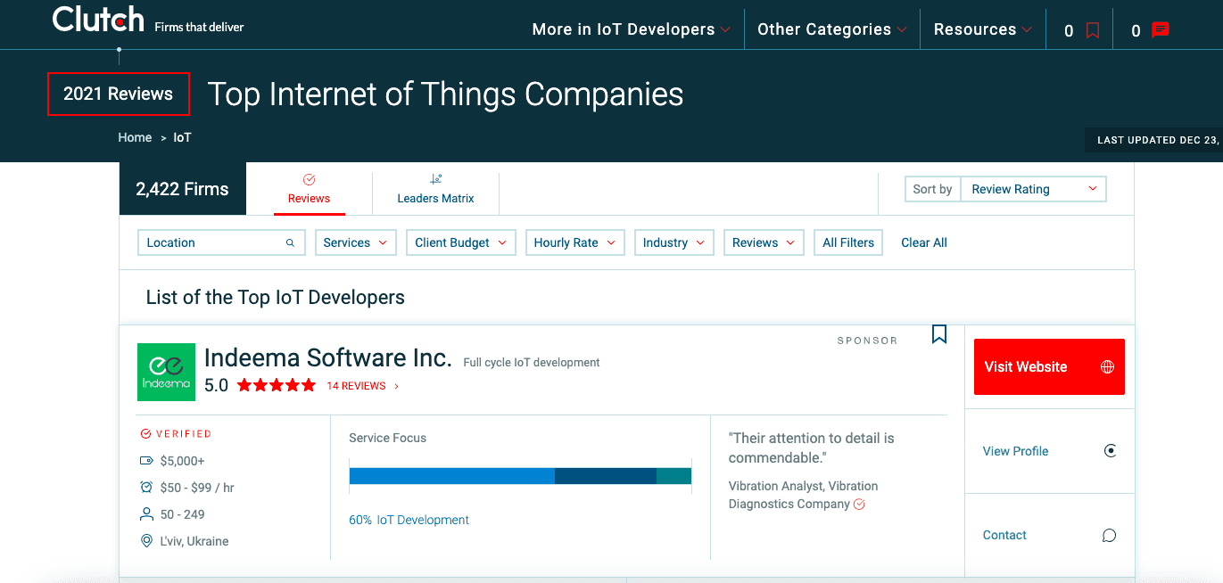 According to Clutch Platform, as of 2021, there are over 2,422 companies globally that specialize in Internet of Things technologies. Although there are still many agencies who aren't on Clutch's list, there's no denying that the competition is tough. So, what makes a company stand out from the rest?