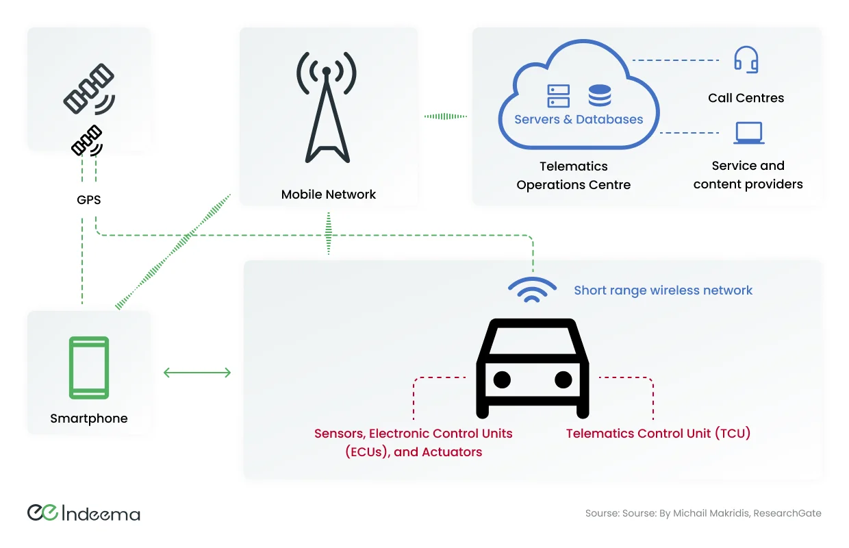 A stable connection is necessary for the car's operation. ECUs collect data about the vehicle's state from all parts, which is then transmitted to the Telematics Control Unit (TCU) for storage.