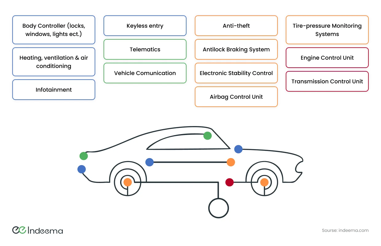 Most ECUs have one or two built-in processors with frequencies of 40–300 MHz and a small amount of RAM and flash memory. Such performance is sufficient for essential functions, but it will not be enough for the multimedia capabilities that the customer expects when he hears about IoT in the automobile industry.