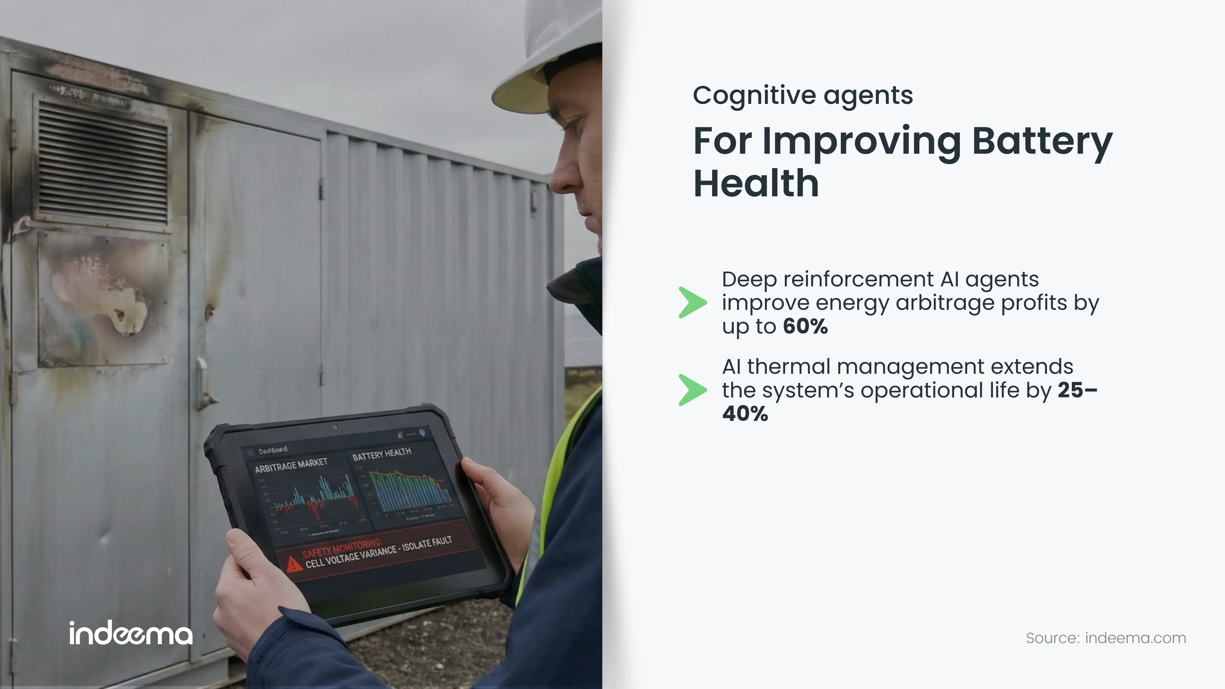 - Safety Monitoring: Agents monitor cell-level voltage variance. A widening variance is a precursor to cell failure. The agent can proactively isolate the specific rack or module, keeping the rest of the container operational, rather than waiting for the BMS to trip the entire system.