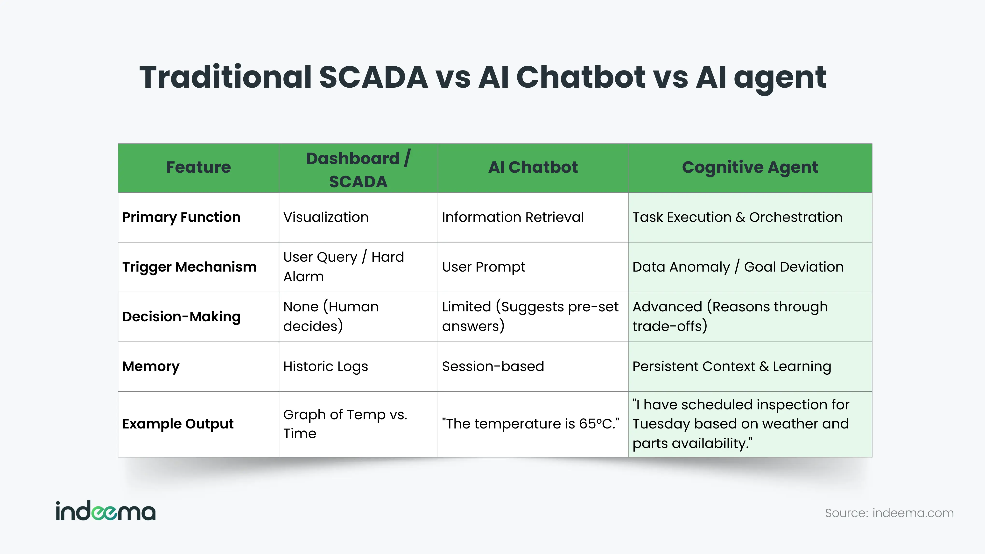 In the renewable energy sector, high availability statistics can be deceptive. A brief outage during peak sun or wind often results in disproportionate financial loss. When a wind turbine, inverter, or battery subsystem goes offline unexpectedly, the first hit is lost MWh. Every hour offline is revenue you can’t recover, especially during high-wind or peak-price windows. Downtime in renewables is a multifaceted hit: lost energy, contractual penalties, substantial repair bills, and risks to safety and reputation all rolled into one. That’s why the industry is shifting toward cognitive agents: AI that perceives, reasons, and actively executes tasks. This evolution marks a significant turning point for the role of AI agents in energy operations, moving them from passive observers to active participants.