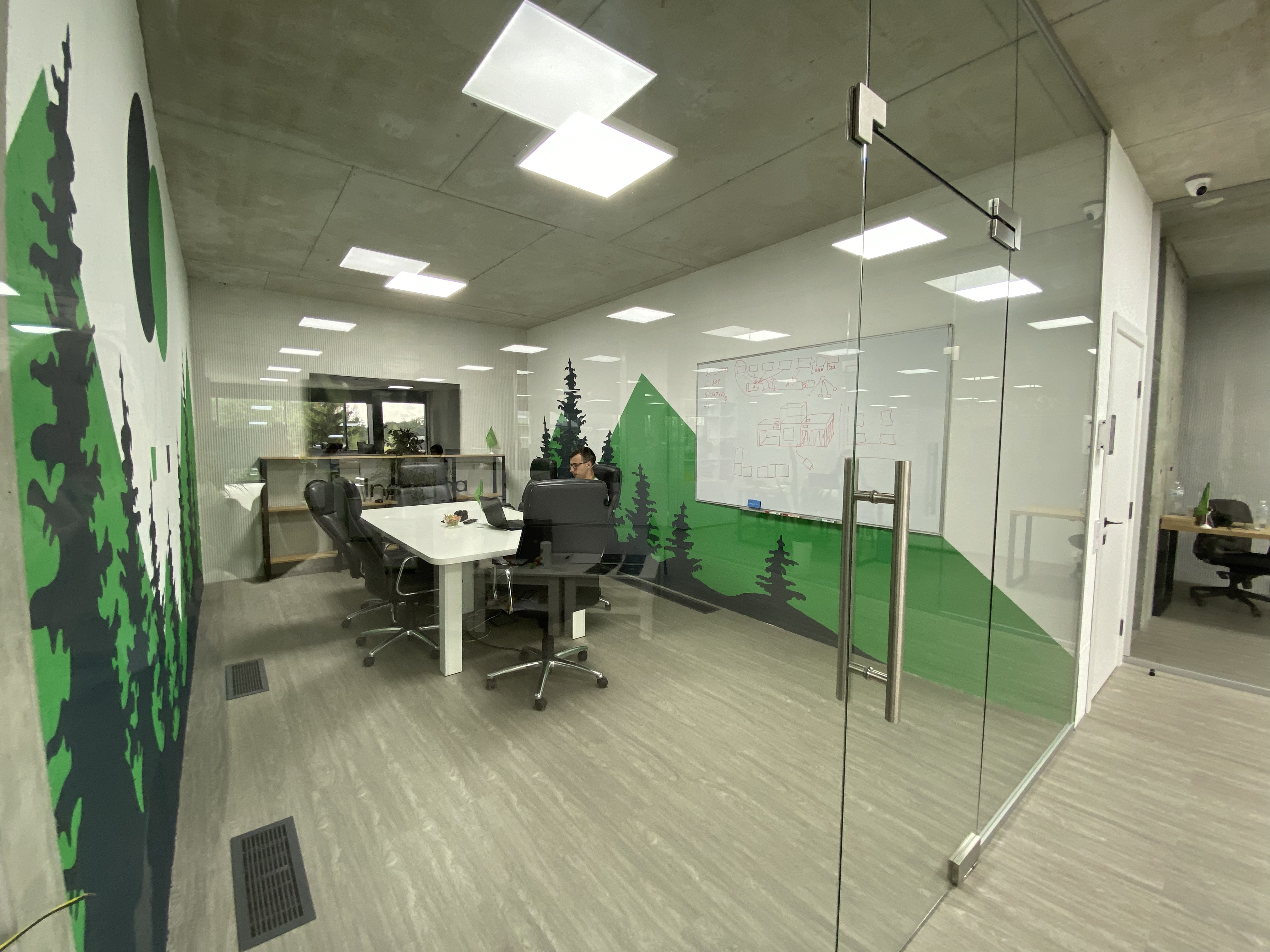 Our meeting rooms, unlike the others, are named after companies with whom we've worked for many years. As an example, one of the meeting rooms - Solar Manager - is completely designed in the client's style. A team that has been working on this project for more than three years now gathers in this room each day for a call with a customer and other stakeholders. This increases the team's motivation and spirit, so they see how each one's work comes to life.